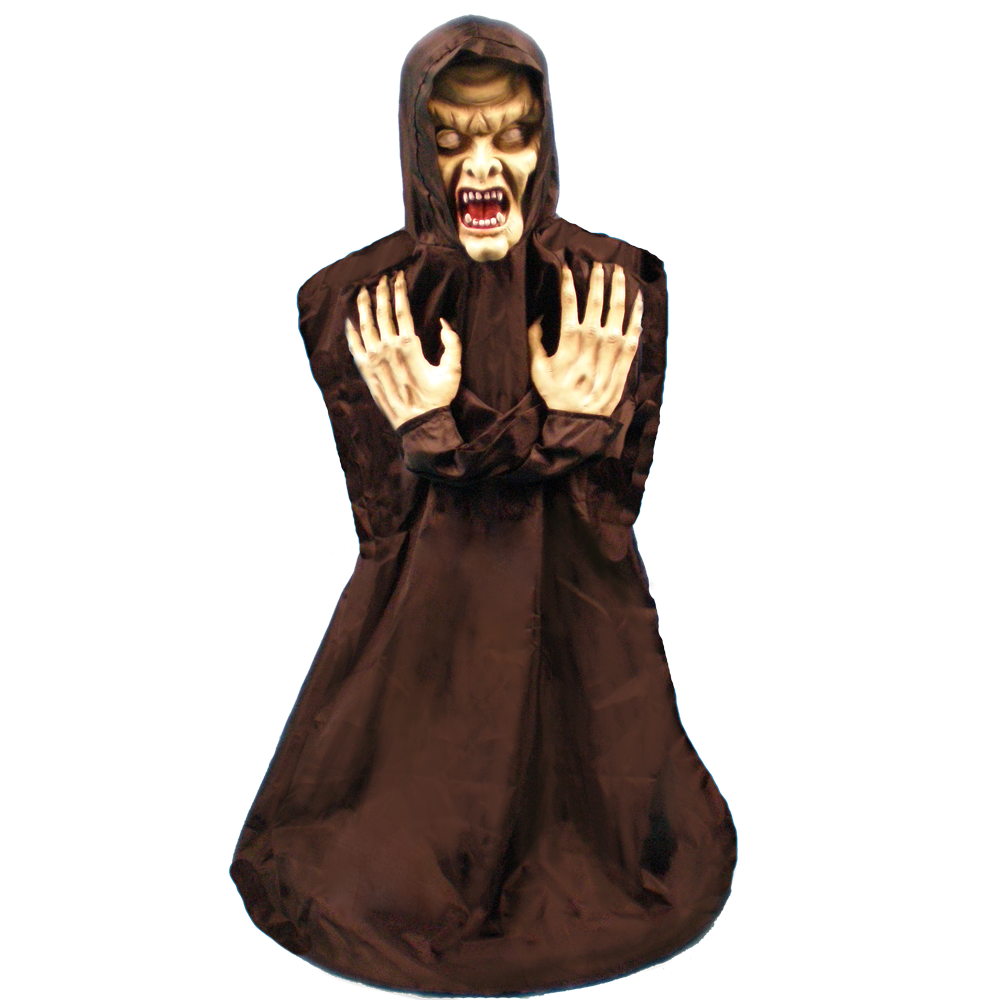 This creepy undead vampire pops up to scary you silly! Sound activated. Plays creepy background music when'Rising From the Grave'! A perfect addition to any graveyard scene.
