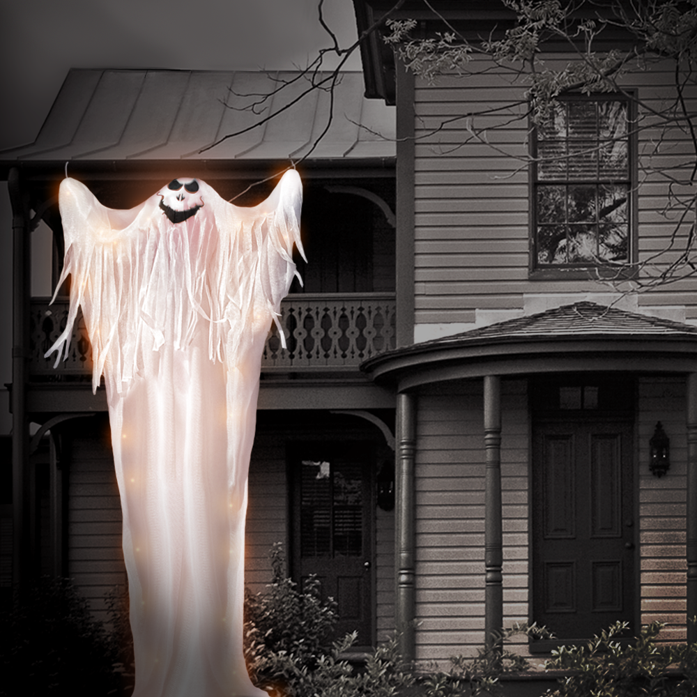 Be sure to scare neighbors all the way at the end of the block with this giant solar powered ghost hanging from you home. The sun charges the ghost during the day so it can glow at night. (Takes about 13 hours to fully charge