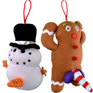 Give this Snowman and Gingerbread Man a 'lil' squeeze to hear an assortment of hilarious, naughty sayings.