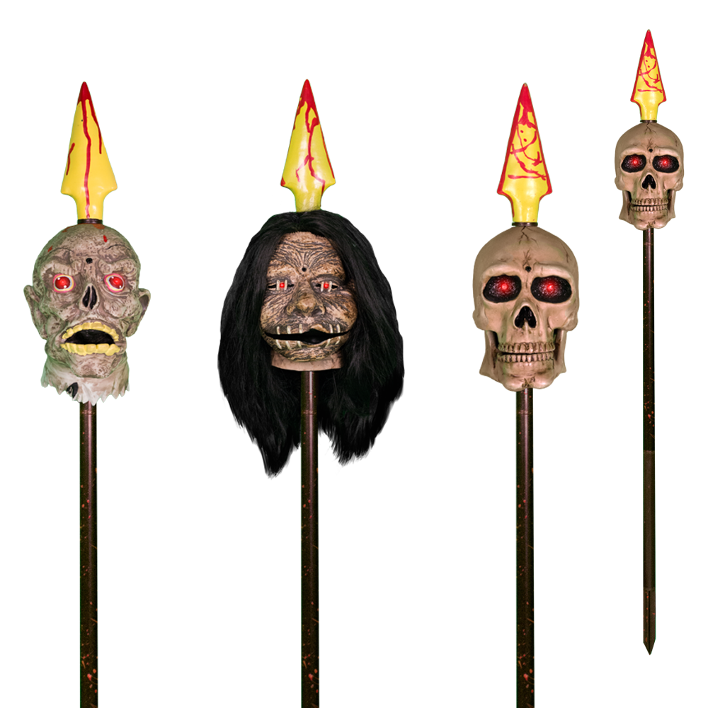 Truly Unique, Motion And Sound Activated Talking Heads "Stuck" On A Spear Will Create A "Sharp" Looking Halloween display. Choose From Funny Or Scary Phases.