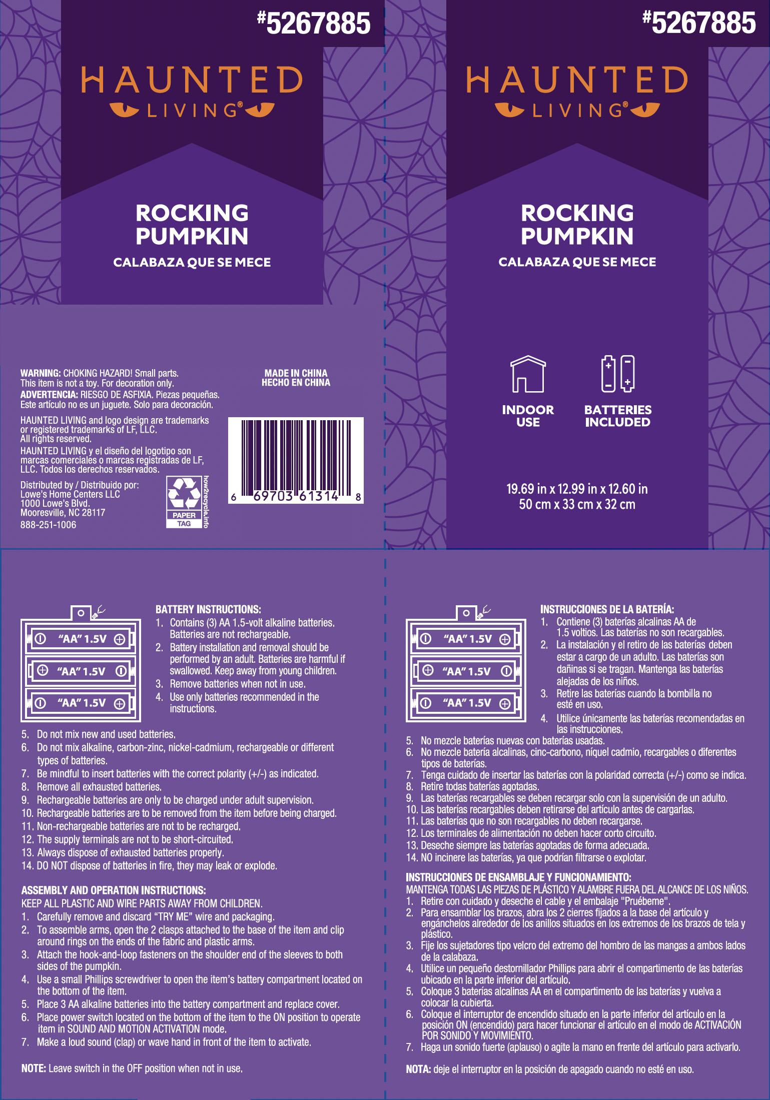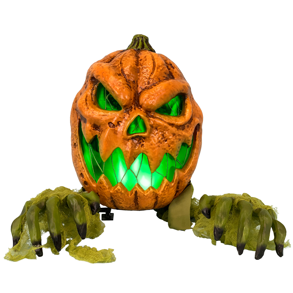 Pumpkin rocks side-to-side with eerie lights and creepy vines!