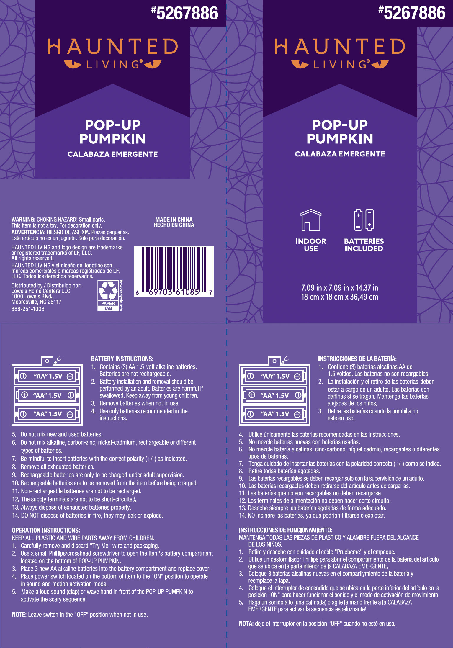 Item # 61085 UPC # 6-69703-61085-7 Batteries: 3 AA Product Size: 14-IN