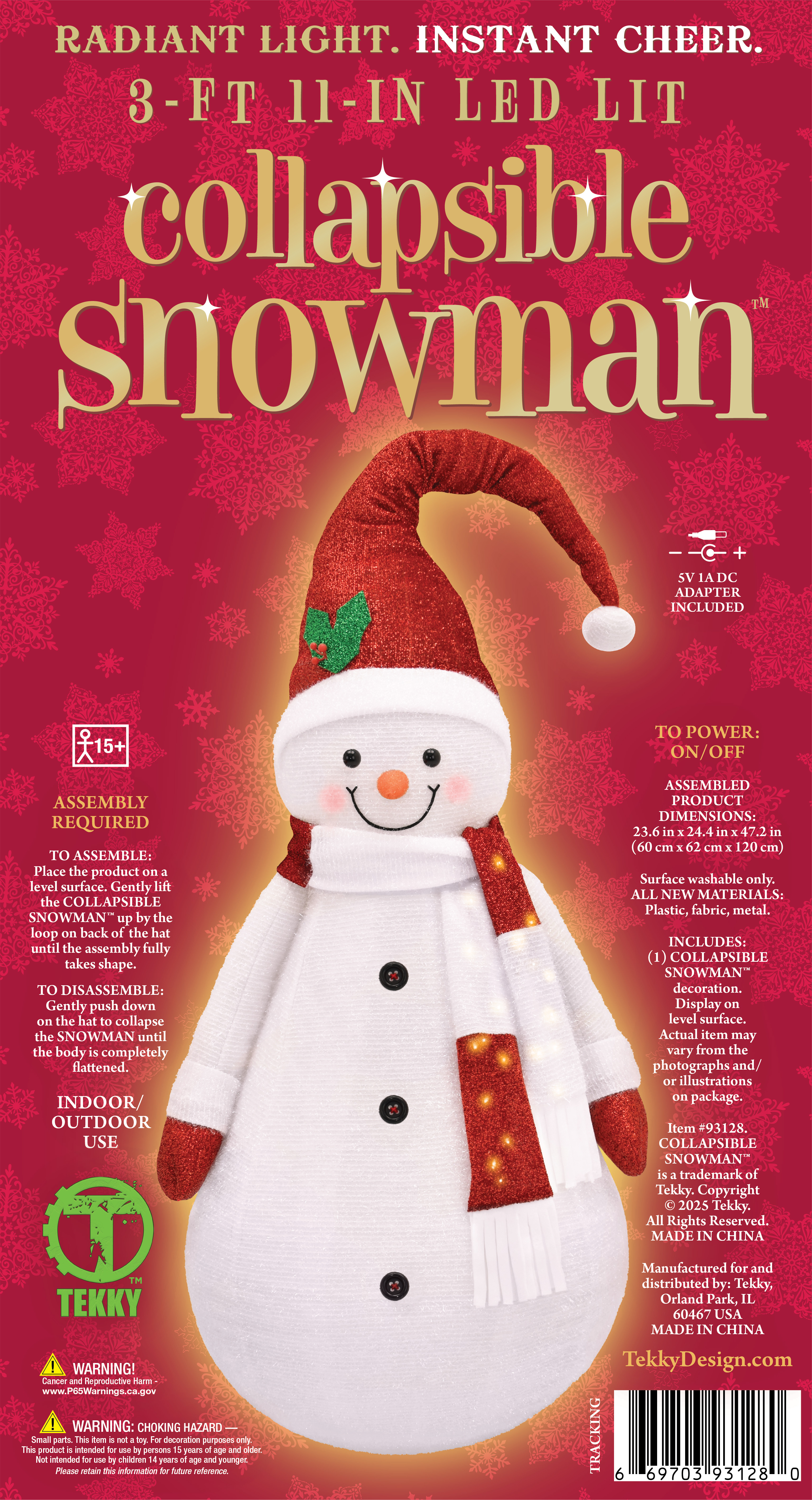 Radiant light. Instant cheer. The 3-FT 11-IN LED Lit Collapsible Snowman™ pops up with ease to brighten your holidays with a glow that melts hearts (not snow!).